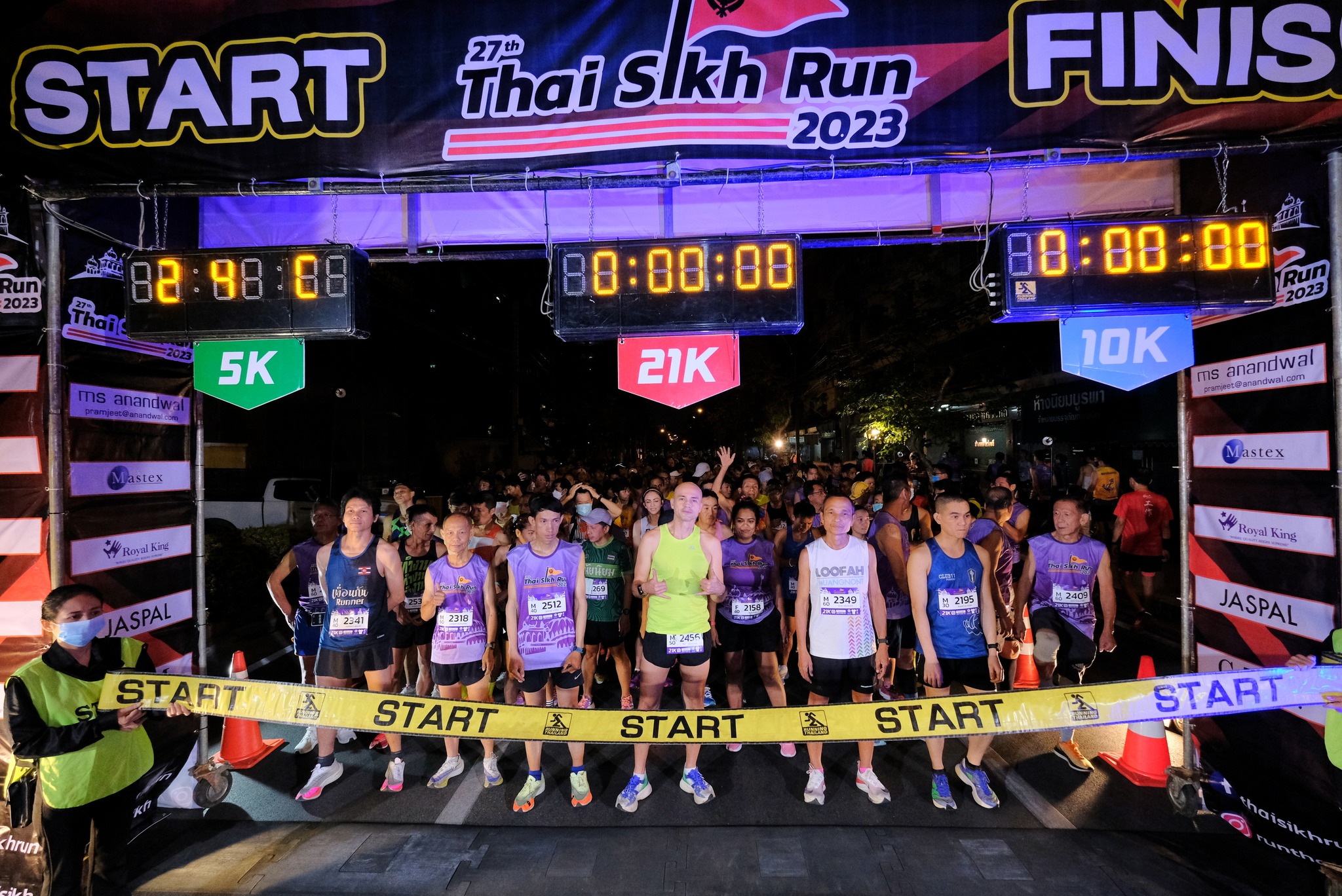 The 27th Thai Sikh Run 2003 saw over 1900 participants racing their way through 5, 10 and 21.1 kilometre tracks, with many from the Thai-Indian community and international community in attendance. The event was graced by the Bangkok governor, Chadchart Sittipunt as the chief guest of honour who also participated in the run. Food stalls put up by the Sikh community were enjoyed thoroughly by attendees after the run. Congratulations to Panatchakorn Wittayaprapharat and Takako Fukuda for acing the 10 Km track, and to Narongchai Sookthong and Nopchaya Handittagul for wining the 21.2 Km race.